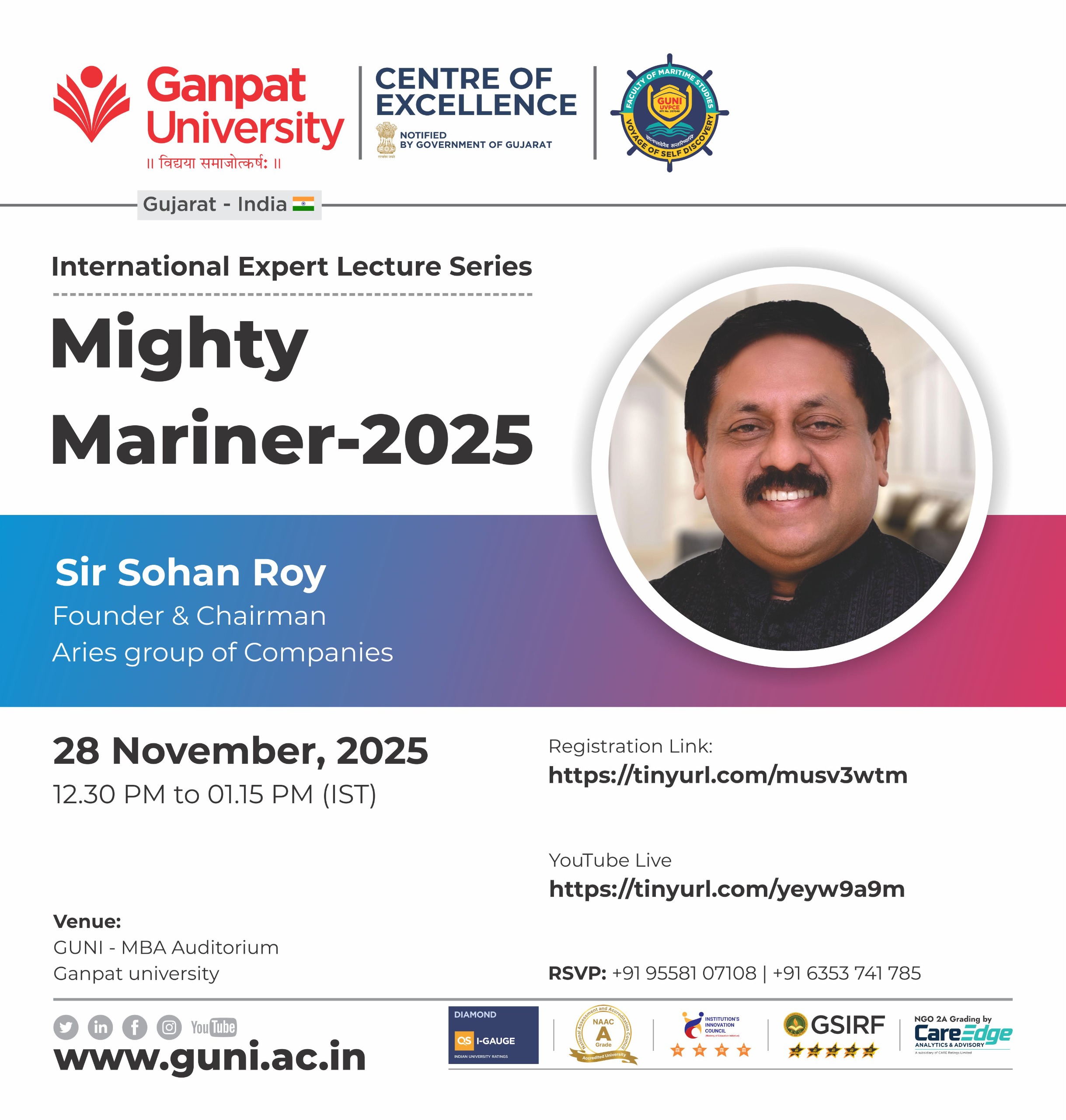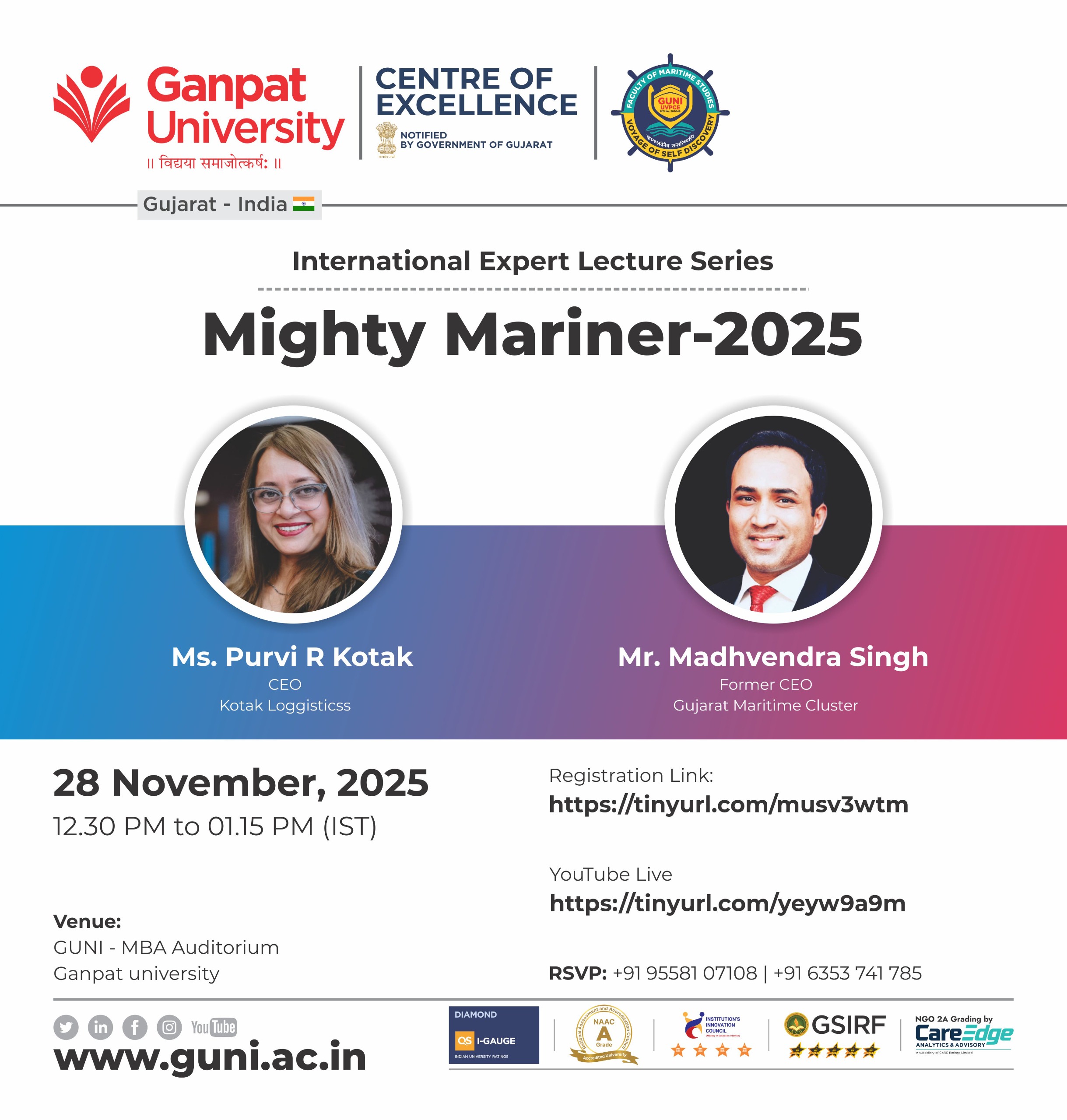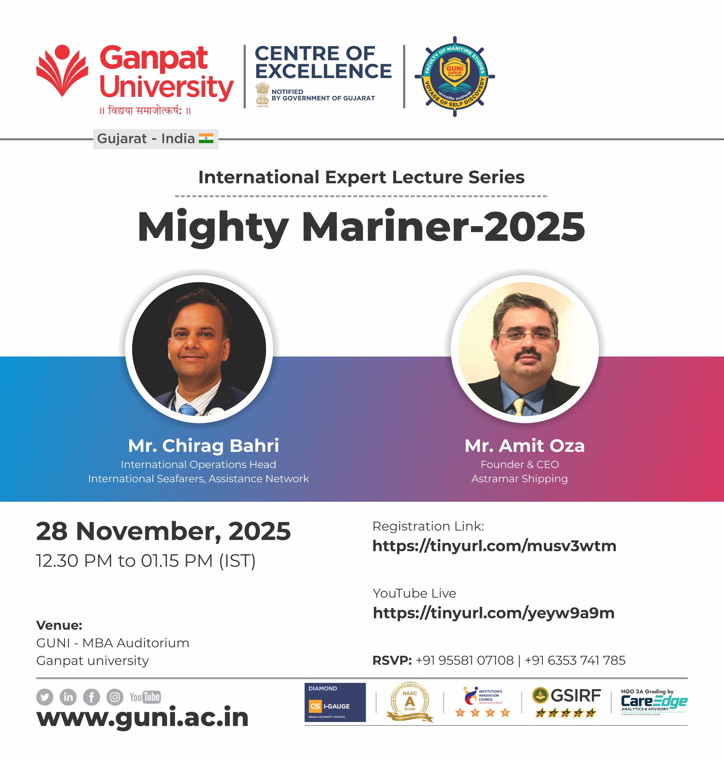 Recuritment for Various Position Click here to know more Ph.D Admission January 2022 Click here to know more An appeal to Donate for Ganpat University Covid Care Centre Click here to know more